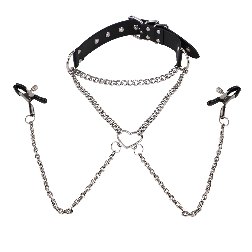 New BDSM Leather Collar Nipple Clamp Metal Stainless Steel Nipple Clamp Alligator Clip Nipple Fun Couple Flirting Sex Toys