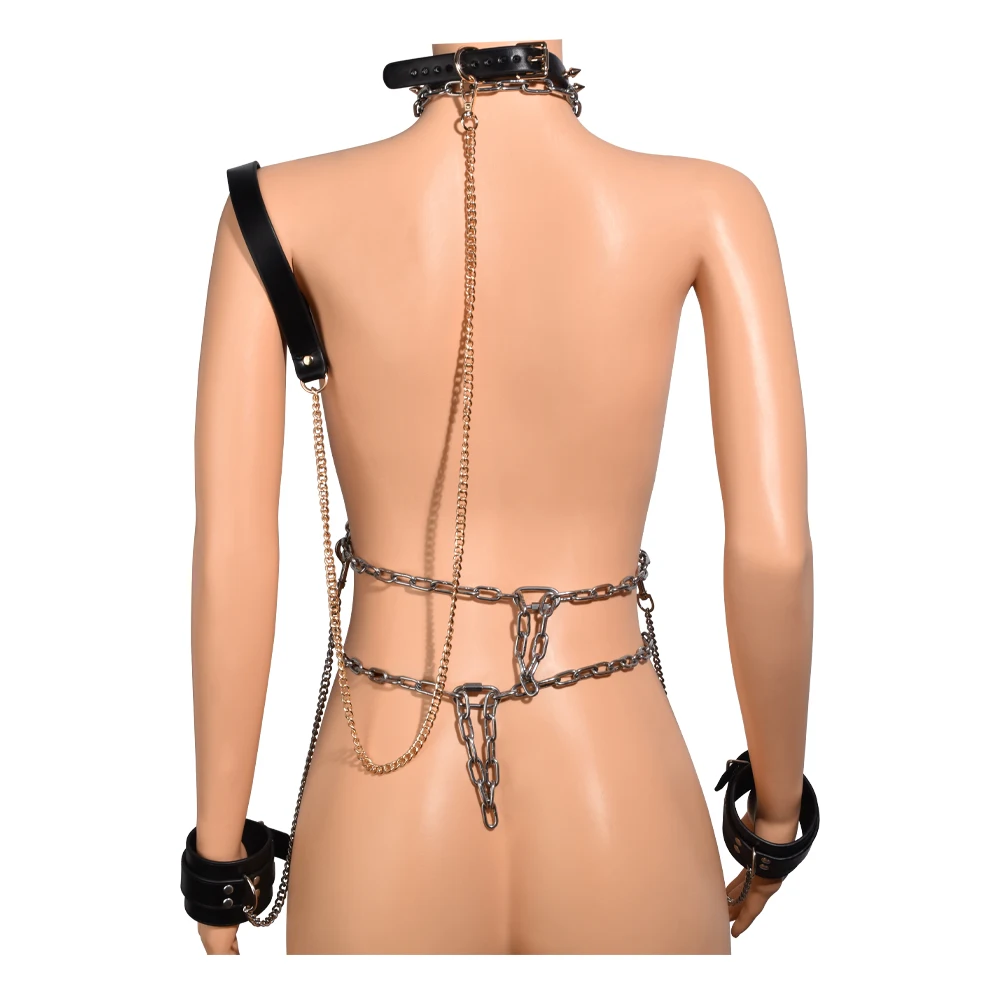 QK-Y8122 BDSM Alloy Set Leather Collar Handcuffs Chain Bondage Breast Fun Couple Flirting BDSM Game Sex Toys Wholesale