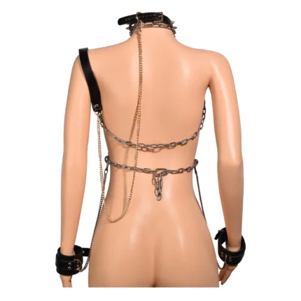 QK-Y8123 BDSM Alloy Chain Bondage Set Leather Collar Handcuffs Breast Fun Couple Flirting BDSM Game Sex Toys Factory Wholesale